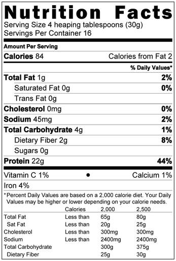 Suggested use: 4 heaping tablespoons (30g). Servings Per Container: 16. Not suggested for use late in the day as increased energy levels can interfere with sleep.